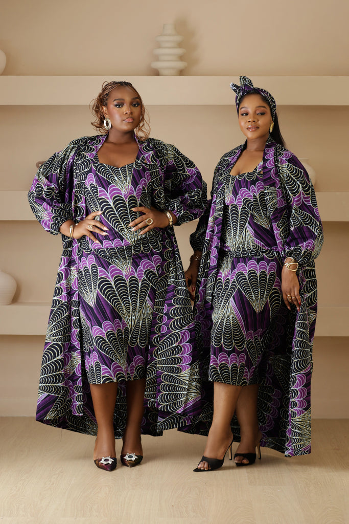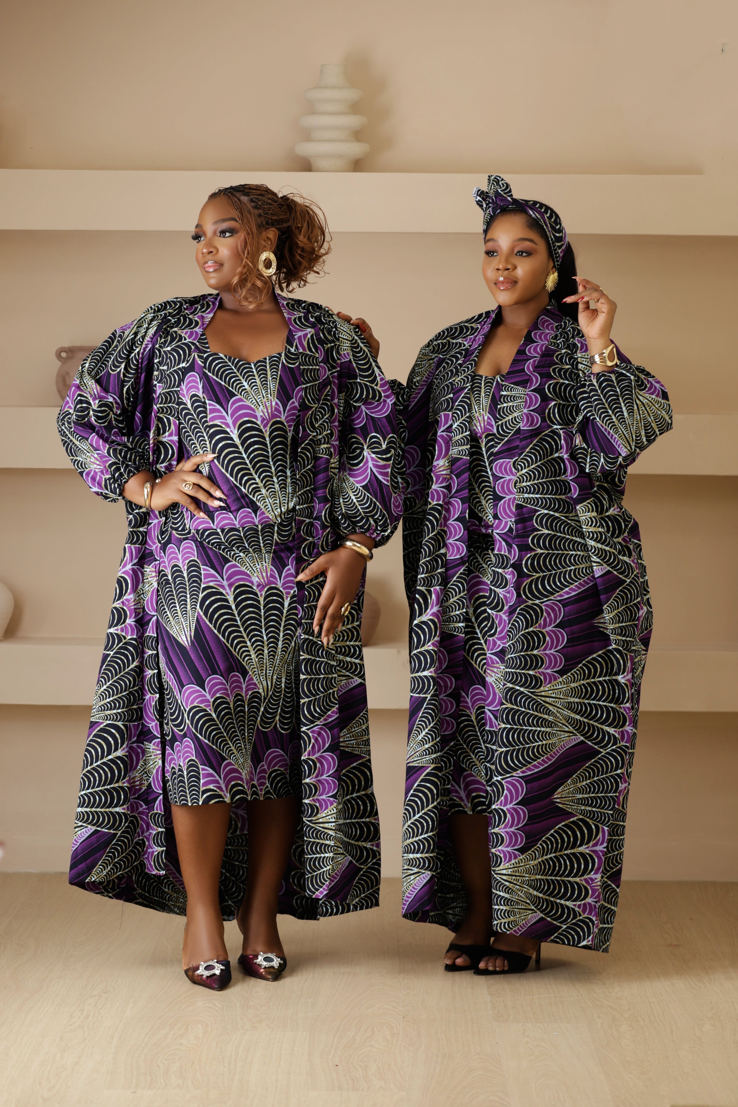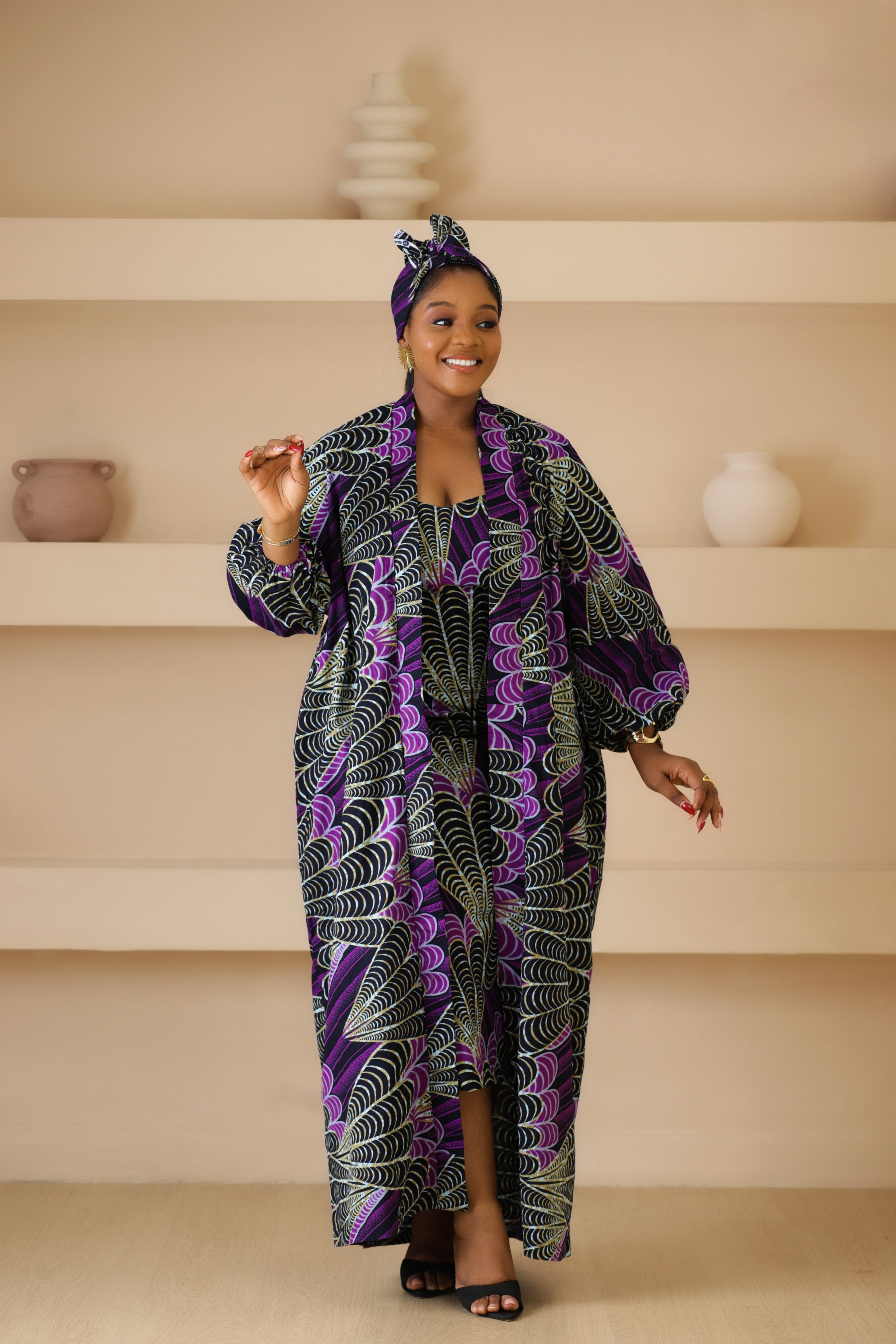 Elevate your style with our ADA SET! This set includes a stunning dress and kimono made with vibrant African print fabric. Mix and match for endless outfit possibilities. Quality and fashion combine to bring out your unique beauty.
