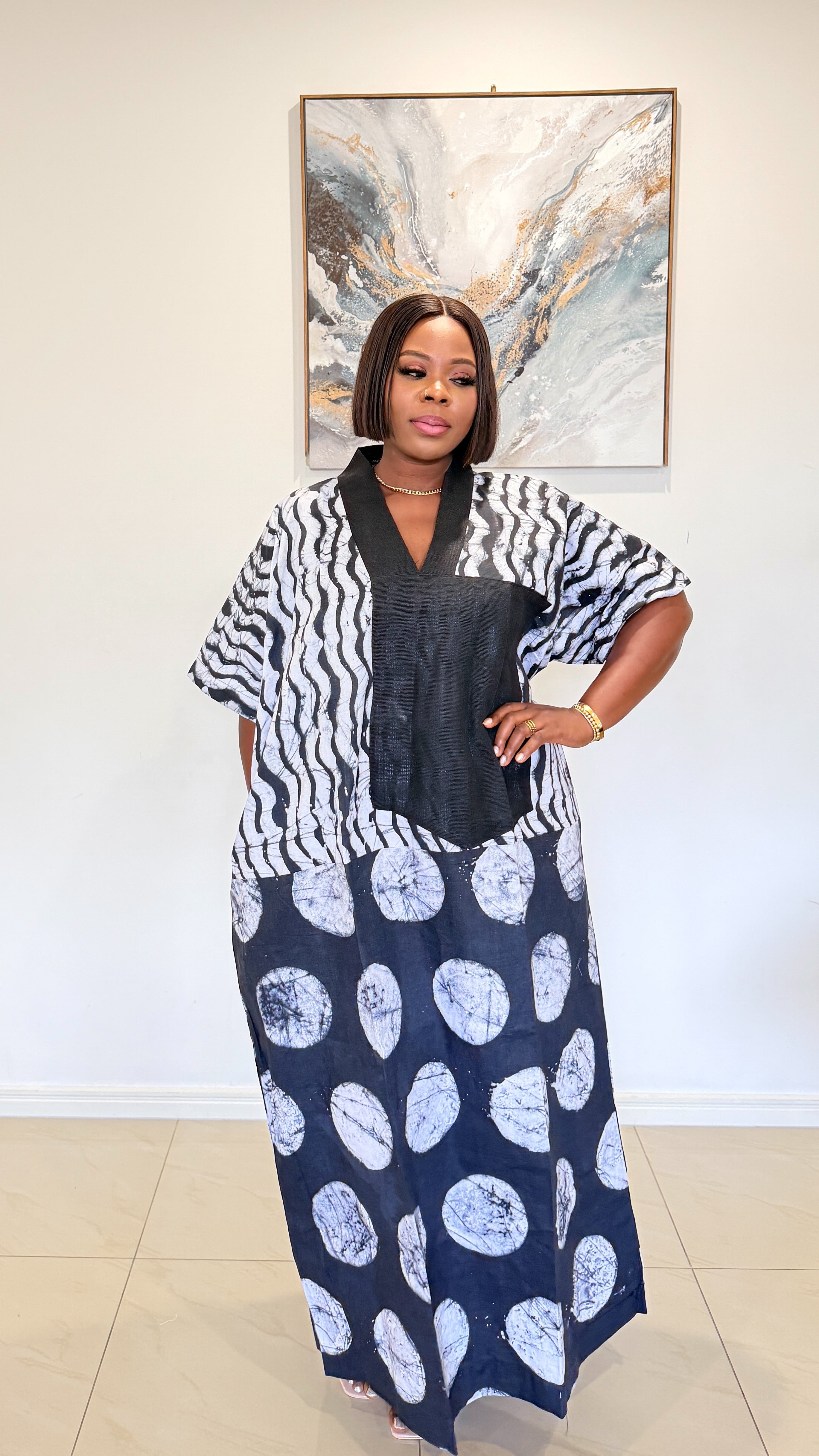 The Mix Print Adire Bubu is a timeless piece that blends traditional craftsmanship with effortless modern style. Made from rich Adire fabric and finished with an Aso-oke front detail, this piece carries a depth that goes beyond just fashion.