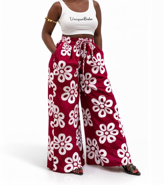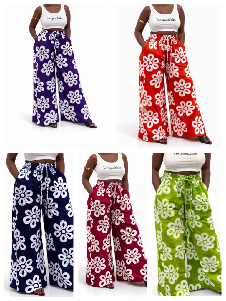 Our Ankara Baggy Pants are designed for effortless style and all-day comfort. Made from vibrant Ankara fabric, these wide-leg pants feature a relaxed silhouette that flows beautifully with every step.