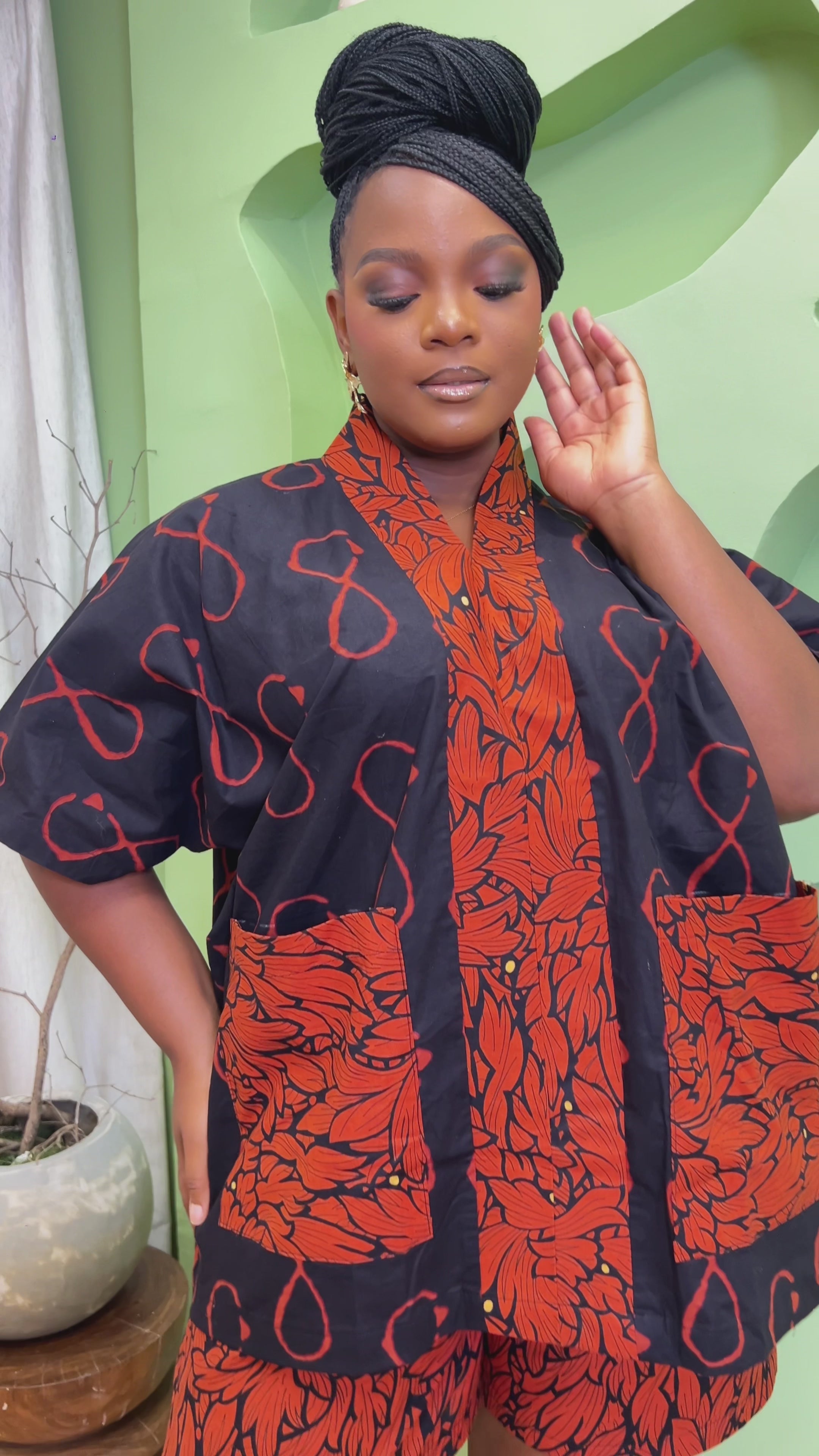 Meet your new go-to set. Crafted from bold African print fabric, this two-piece combo is all about easy comfort. The top comes with two front pockets, because who doesn't need extra storage?  the shorts have an elastic waist that stretches with you. Relaxed and ready for whatever your day throws at you.