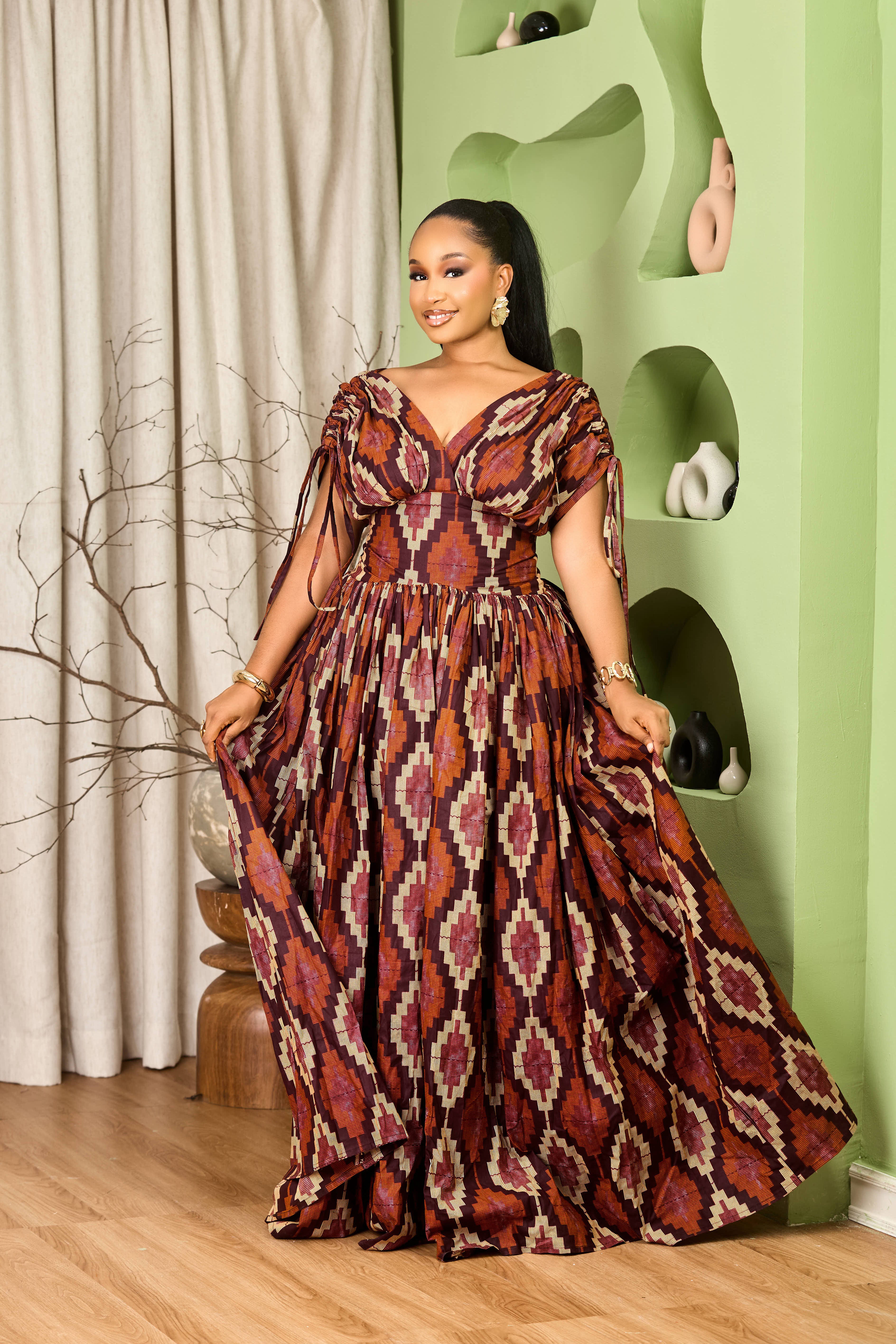 The Samatha Dress in Brown is the kind of piece that makes getting dressed actually fun. Made with quality fabric, a cinched waist that flatters beautifully, this full-length dress is your secret weapon for looking effortlessly put-together. The drawstring sleeves add a playful touch, adjust them to match your mood and the occasion. Whether you're celebrating something special or just want to feel fabulous, this dress delivers every single time.