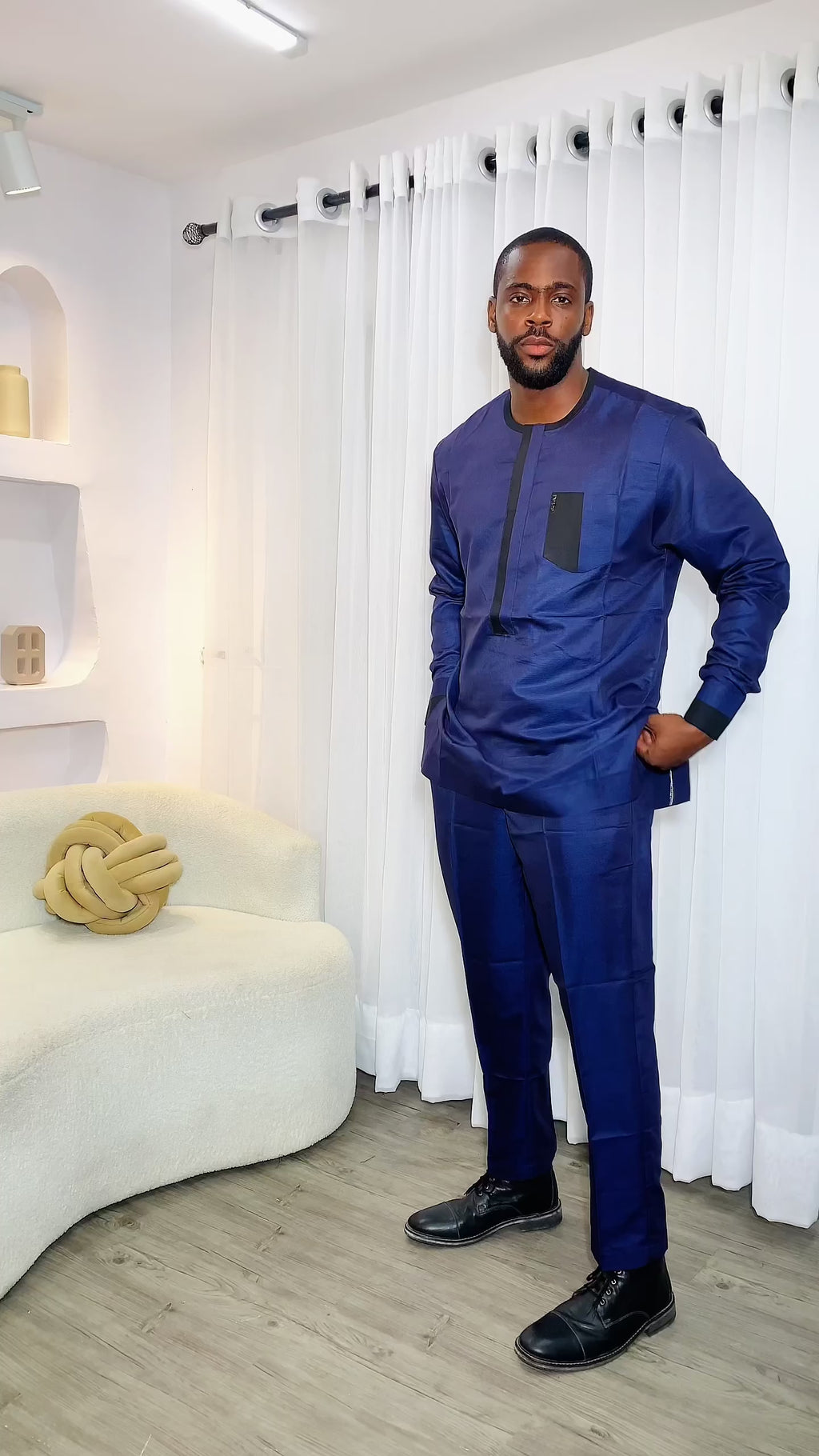 Upgrade your wardrobe with our stylish BLUE AND BLACK MEN SET. Made with luxurious Italia wool fabric, this set offers a comfortable yet sophisticated look. Elevate your style today!