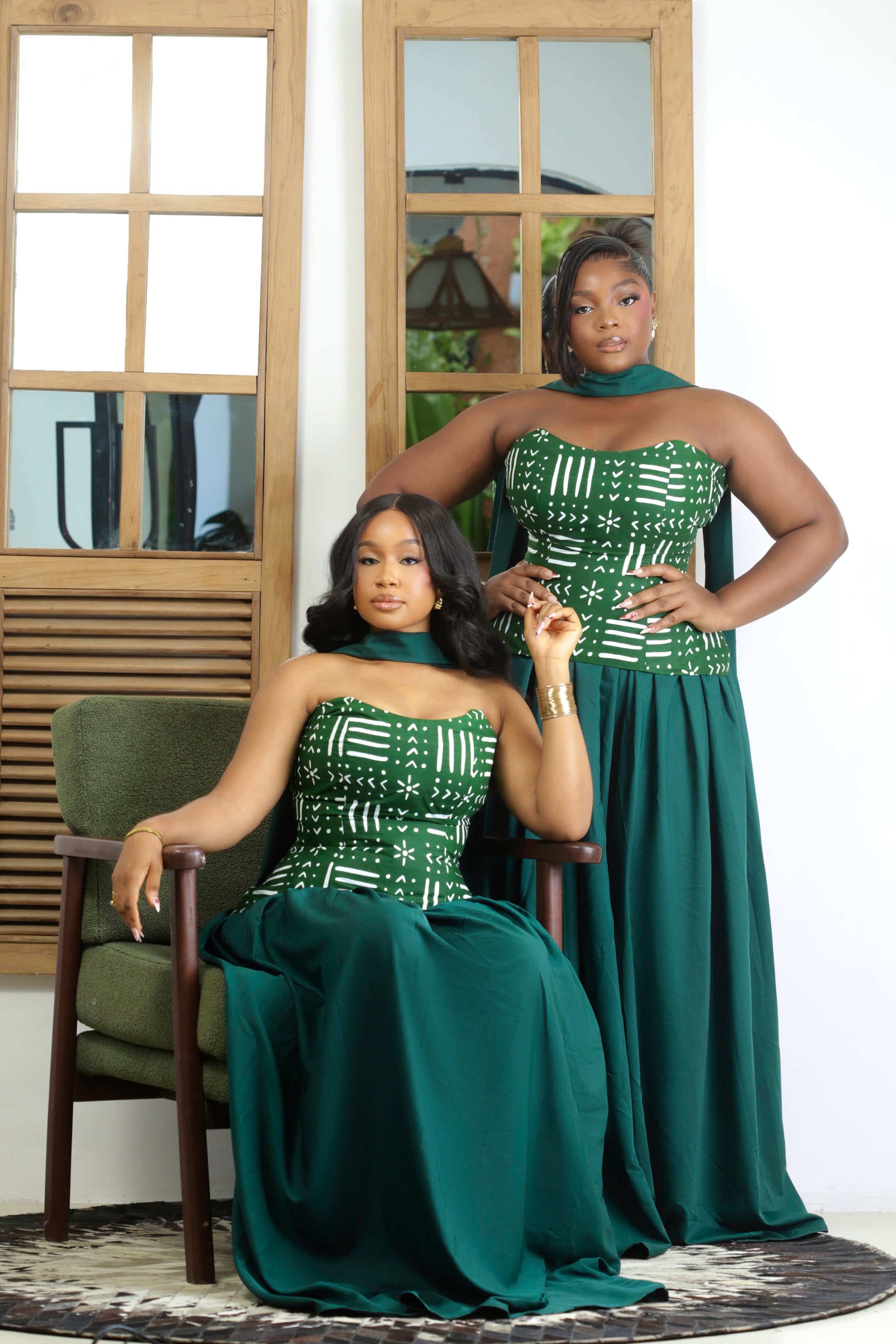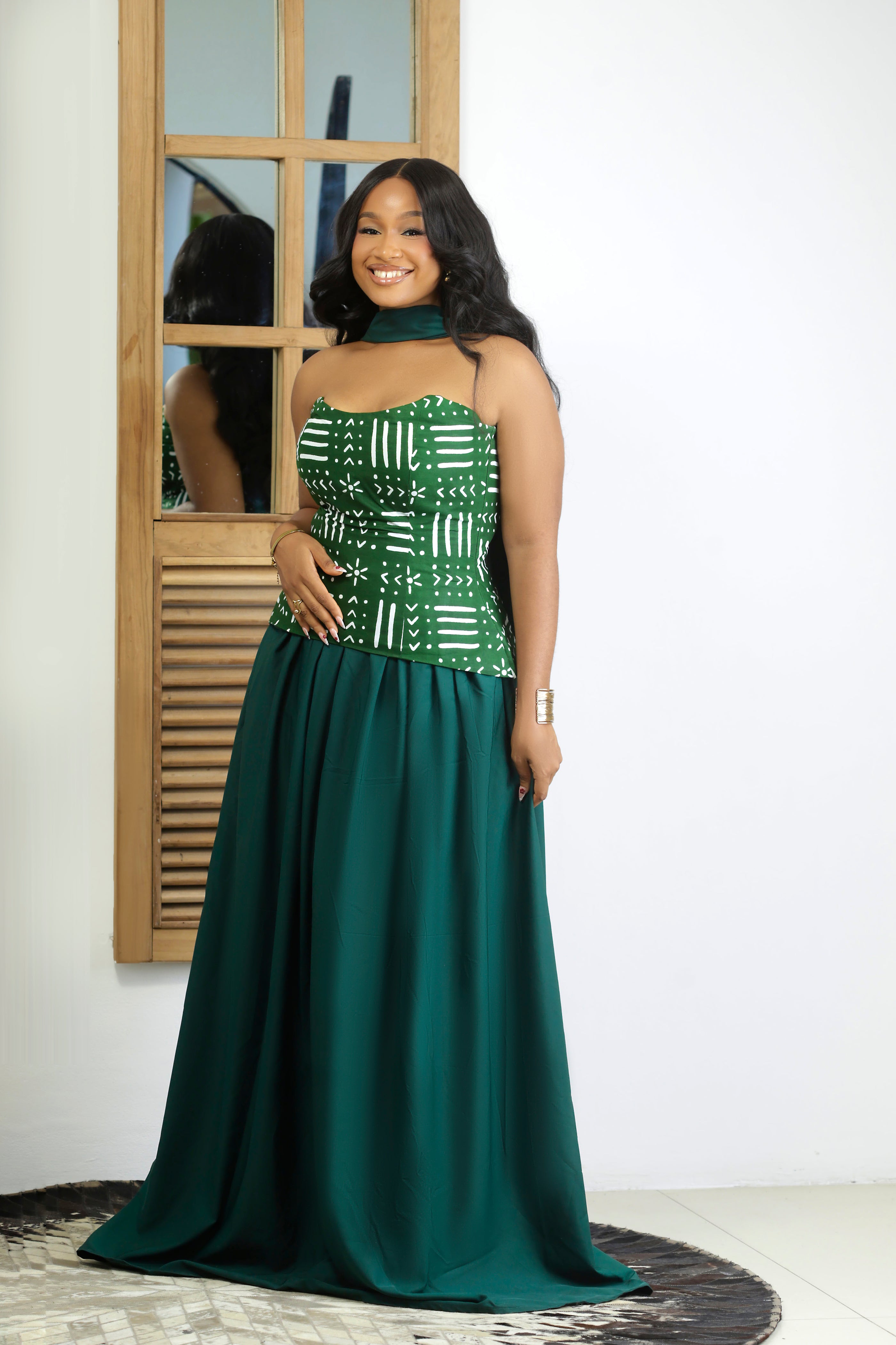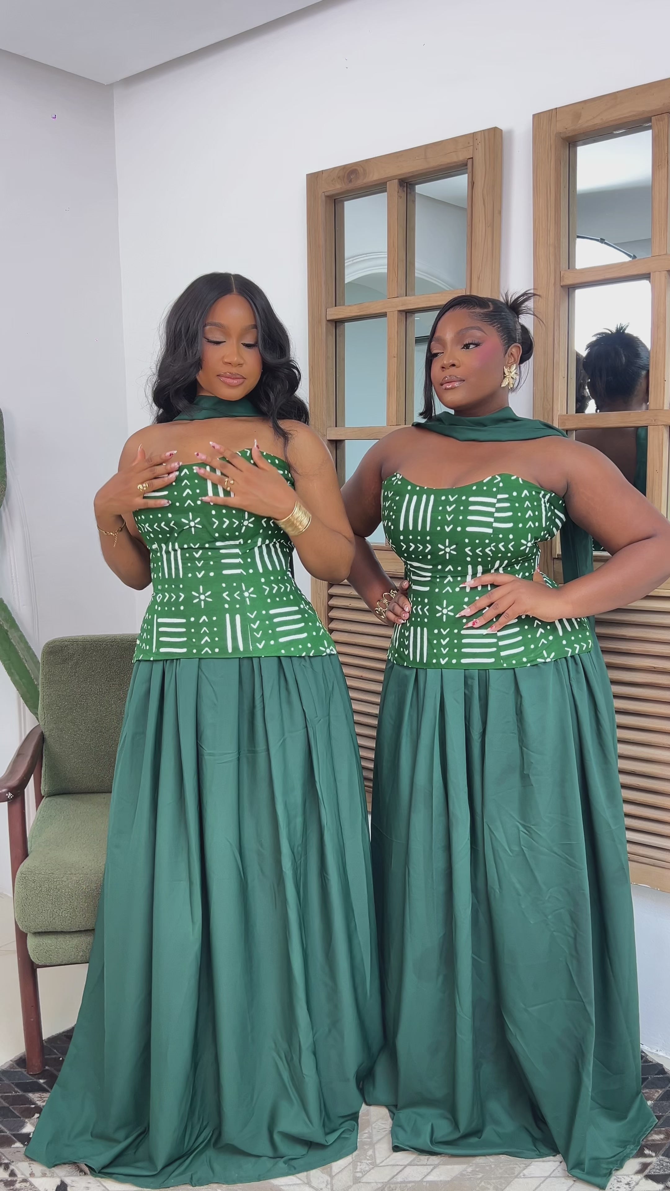 The Miraya Set is designed for the woman who loves to look put together without overthinking it. Featuring a structured corset-style top that cinches the waist beautifully, paired with a flowing maxi skirt, this set gives you that soft, refined silhouette instantly.